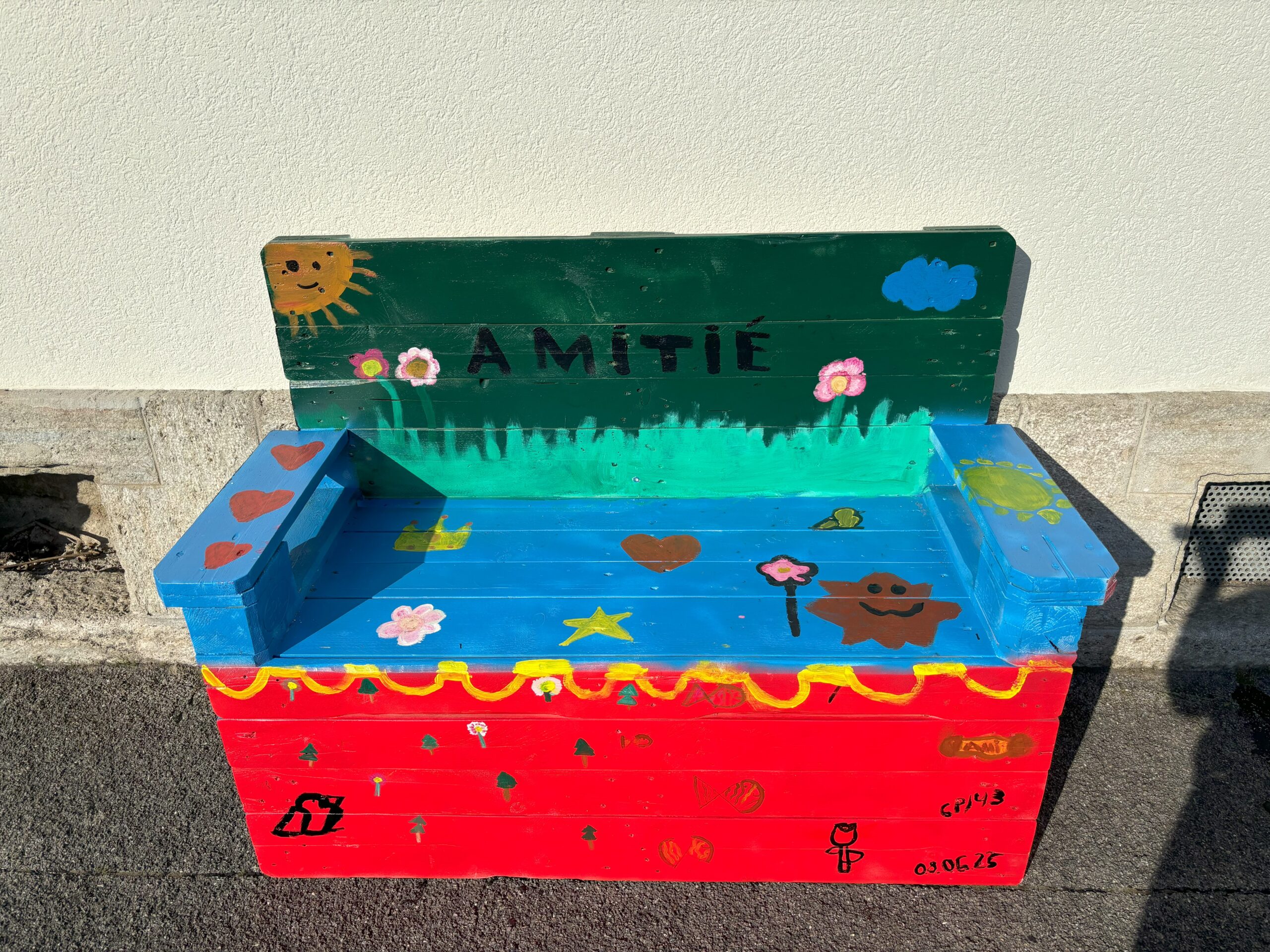 Un grand BRAVO aux élèves de la 6P/C43 et à leur enseignante, Mme Leyla Pinar, qui ont bricolé un banc de l’amitié pour la cour de récréation !